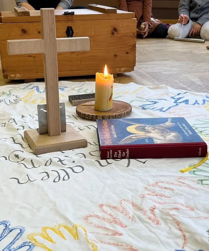 Uns ist es als evangelische Einrichtung wichtig, den Kindern Erfahrungsmöglichkeiten im religionspädagogischen Bereich zu erschließen. Kinder kommen bei uns mit christlichen Inhalten in Berührung. Wir respektieren andere Glaubensrichtungen und Nicht-Religiosität von Familien.